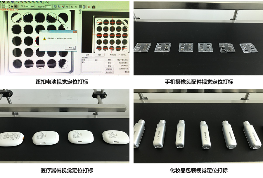 本技術運用了視覺定位原理,先對產品進行模板制定,保存為標準模板,在加工時對產品進行拍照,由計算機對比及位置定位,調整后即可對產品進行精確加工。所加工的產品外形可以是圓形、方形、非規則形狀都可以識別;這種工藝特別適合小產品,可免除定位料盤、固定夾具的加工,大大節省了激光打標加工周期。可根據實際產品工藝要求選配不同類型激光器。